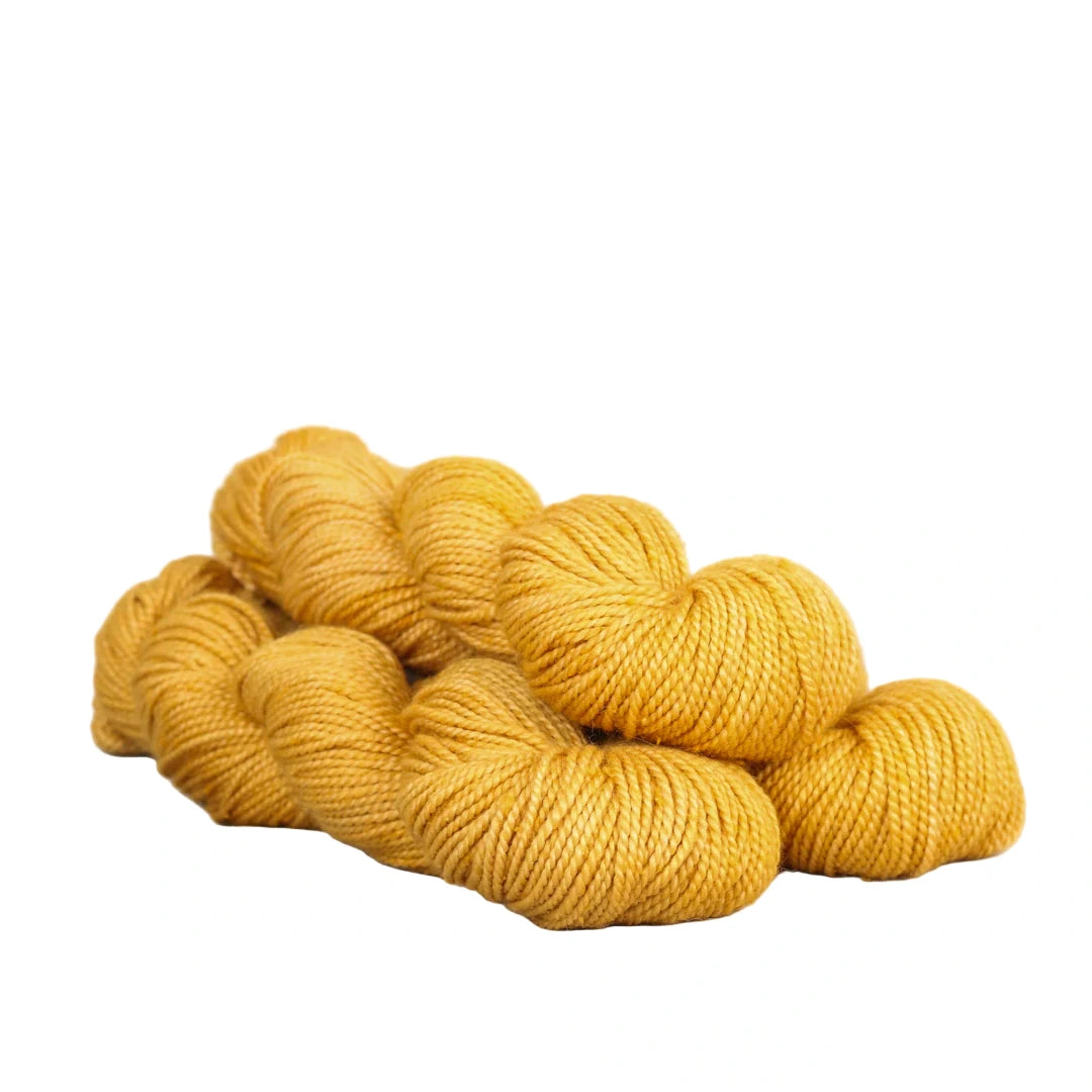 A soft blend of Merino wool (for warmth), baby alpaca and silk noil (for drape and luster) come together to make this knobbly, textured rusted yarn. Each color is kettle dyed creating subtle duo-tones and visual interest.