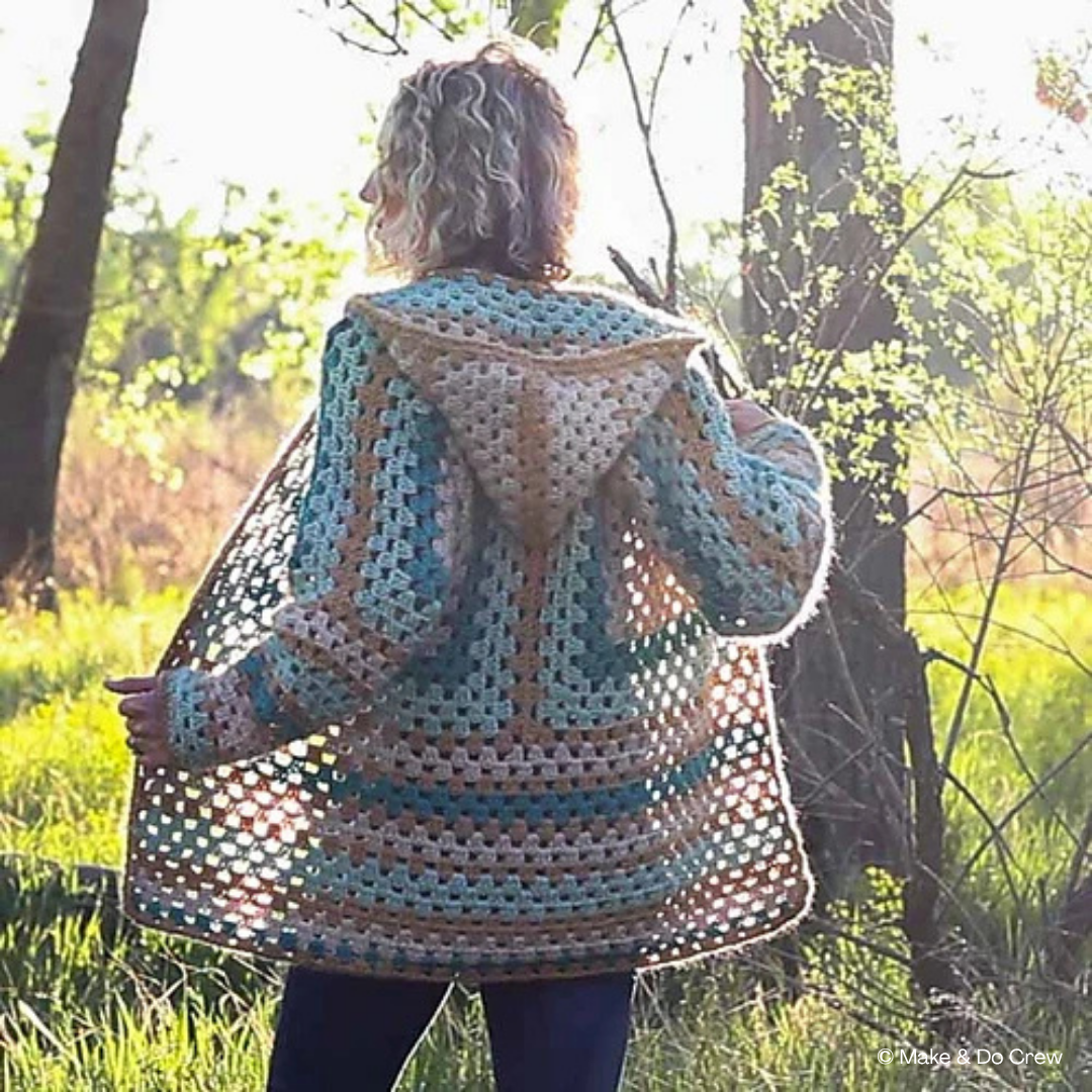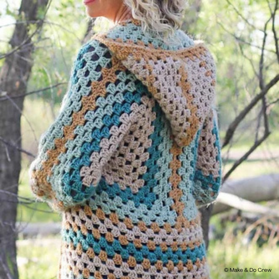 What you'll learn: the granny stitch, hexagon cardigan construction, how to seam together crochet