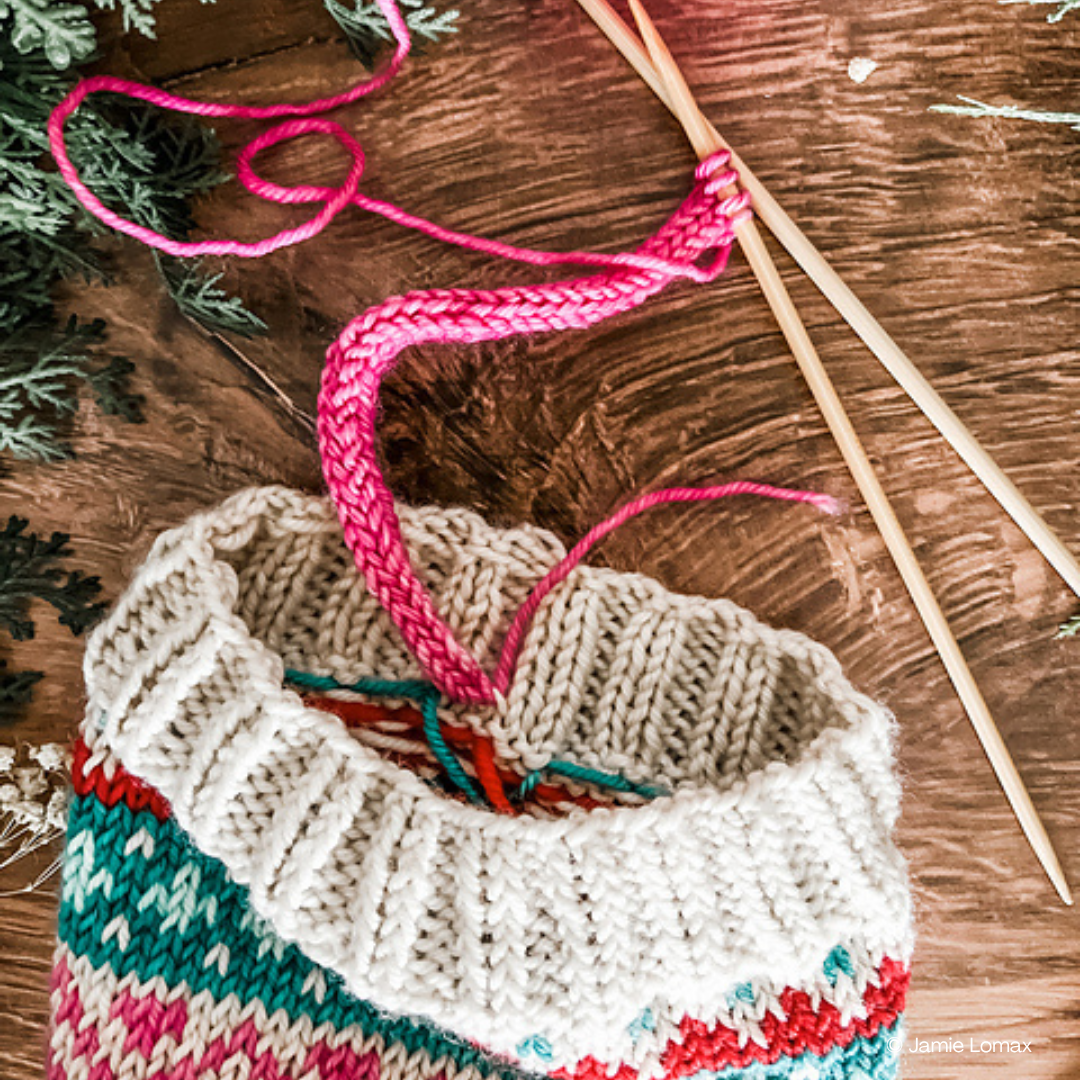 Yarn: Each stocking is an excellent way to use up DK weight scraps from your stash mixed with fun additions.