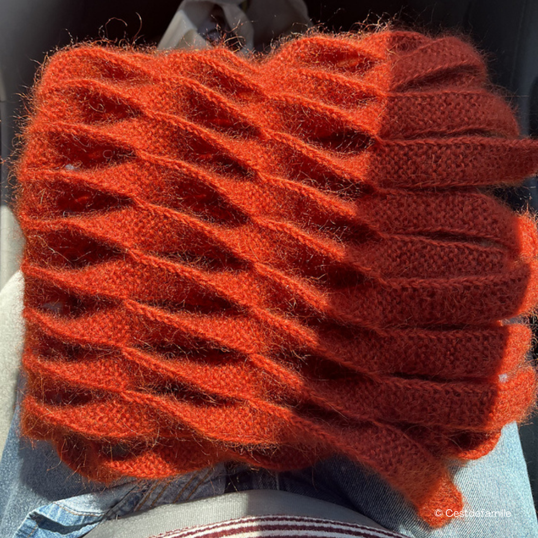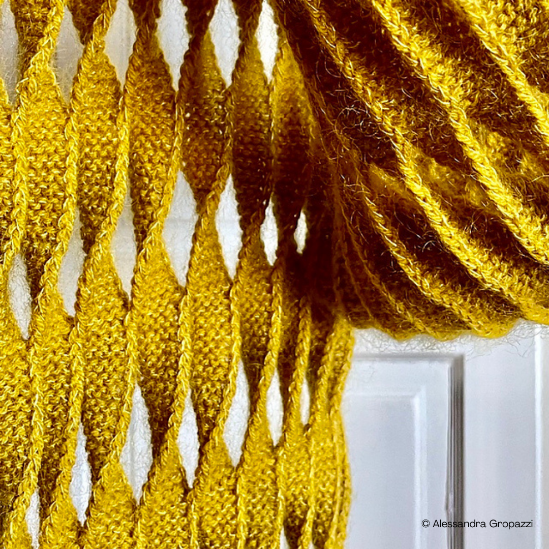 The unique twisted structure of this scarf plays wonderfully with shadow and depth to create a truly striking accessory!