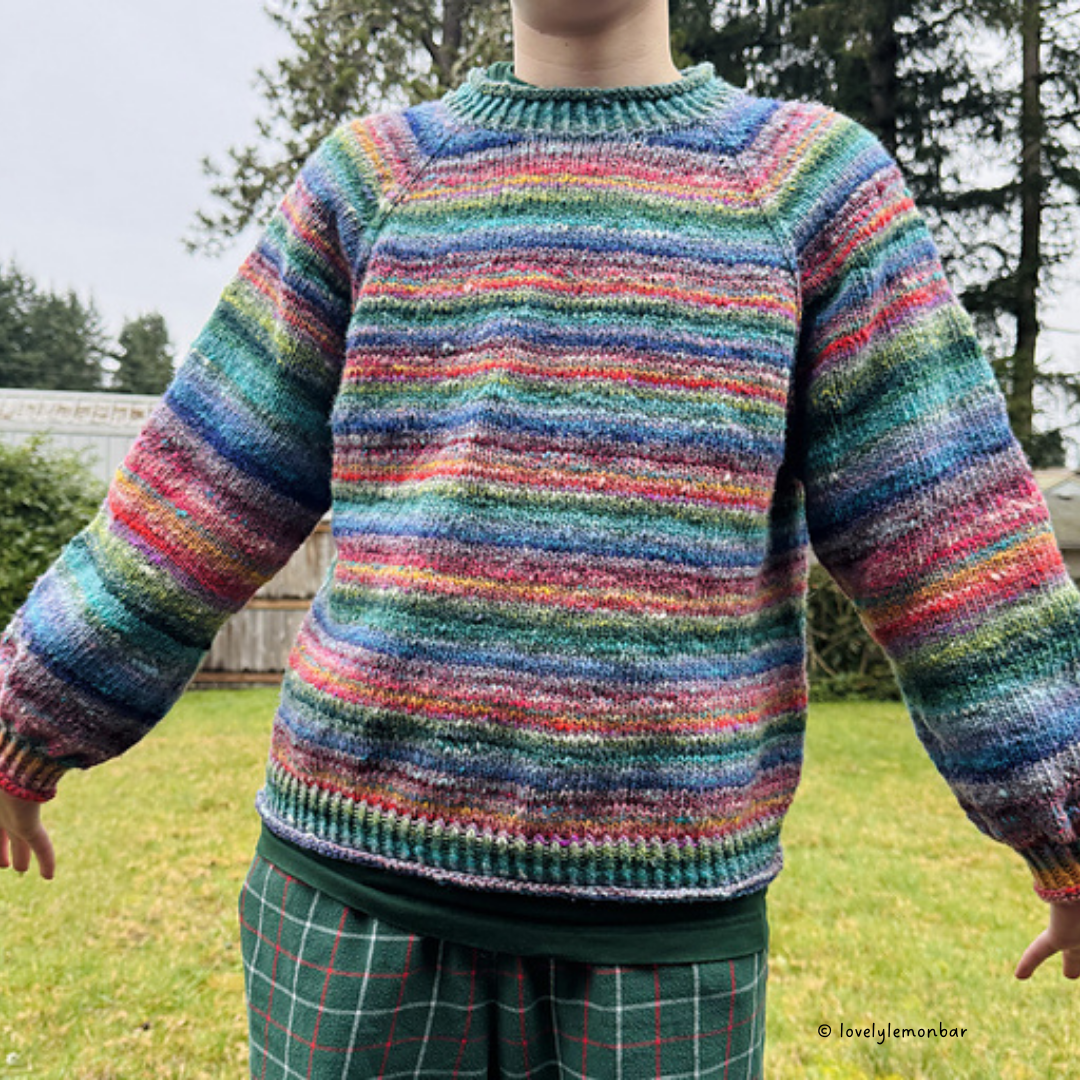 What you'll learn in this class: How to knit in small circumference using magic/traveling loop, German short rows, top-down raglan sweater construction, M1L and M1R increases, and (optionally) how to create jogless stripes!