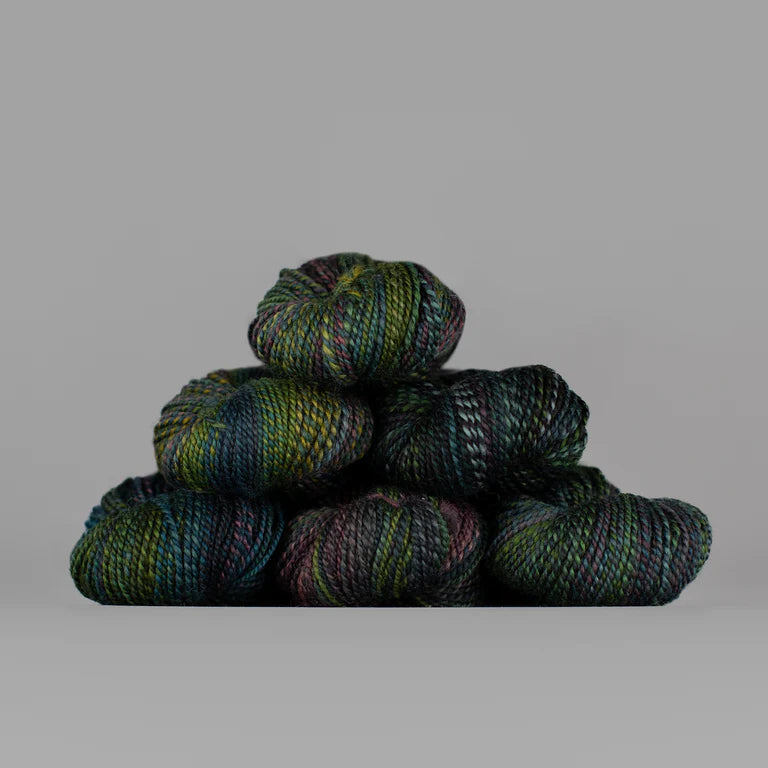 Meet Nocturne - Dyed in the Wool's moodier cousin! Dyed on a grey base, with Spincycle's signature color shifting magic for an accent that will add a mysterious edge to any knit.