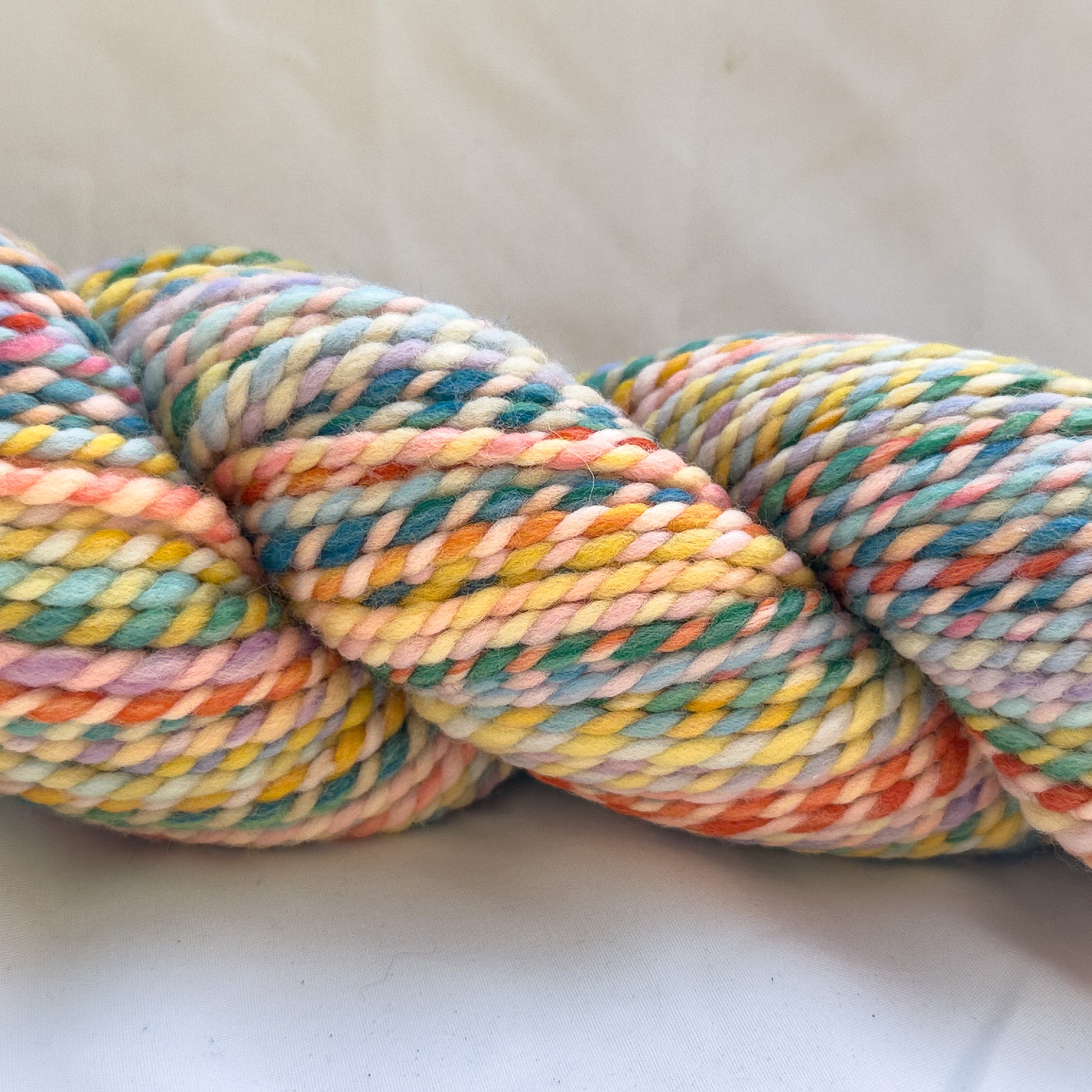 Spincycle yarns are hand-dyed, hand spun, and highly irregular in color even within a dye-lot. Switcheroo looks completely different skein to skein. We have included several pictures of different skeins for your consideration.
